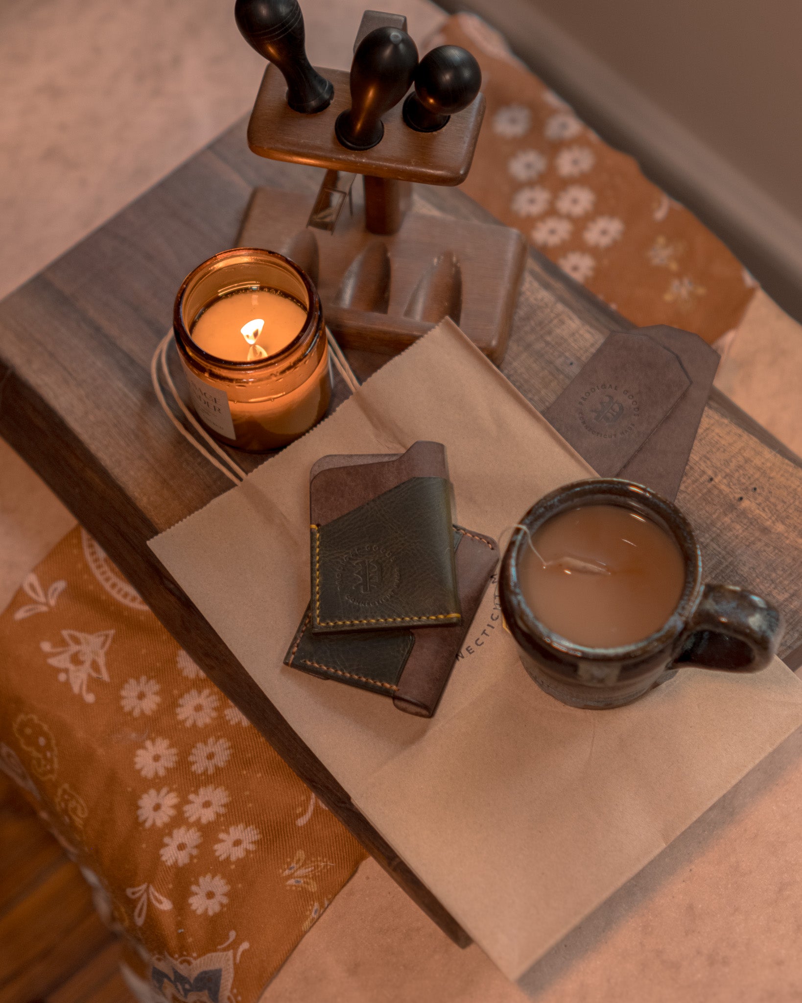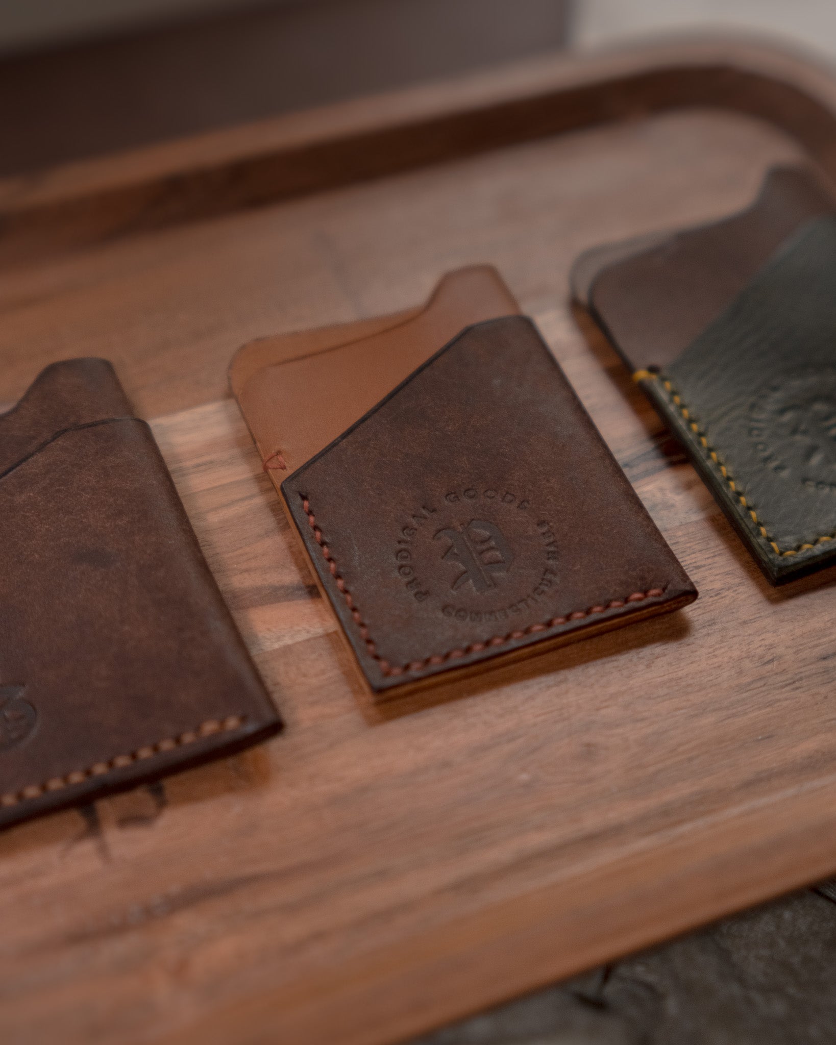 A simple cardholder made with just 2 pieces of leather. The Sinai has 3 slots for credit cards and can hold cash folded into quarters, though this is not the intended use.